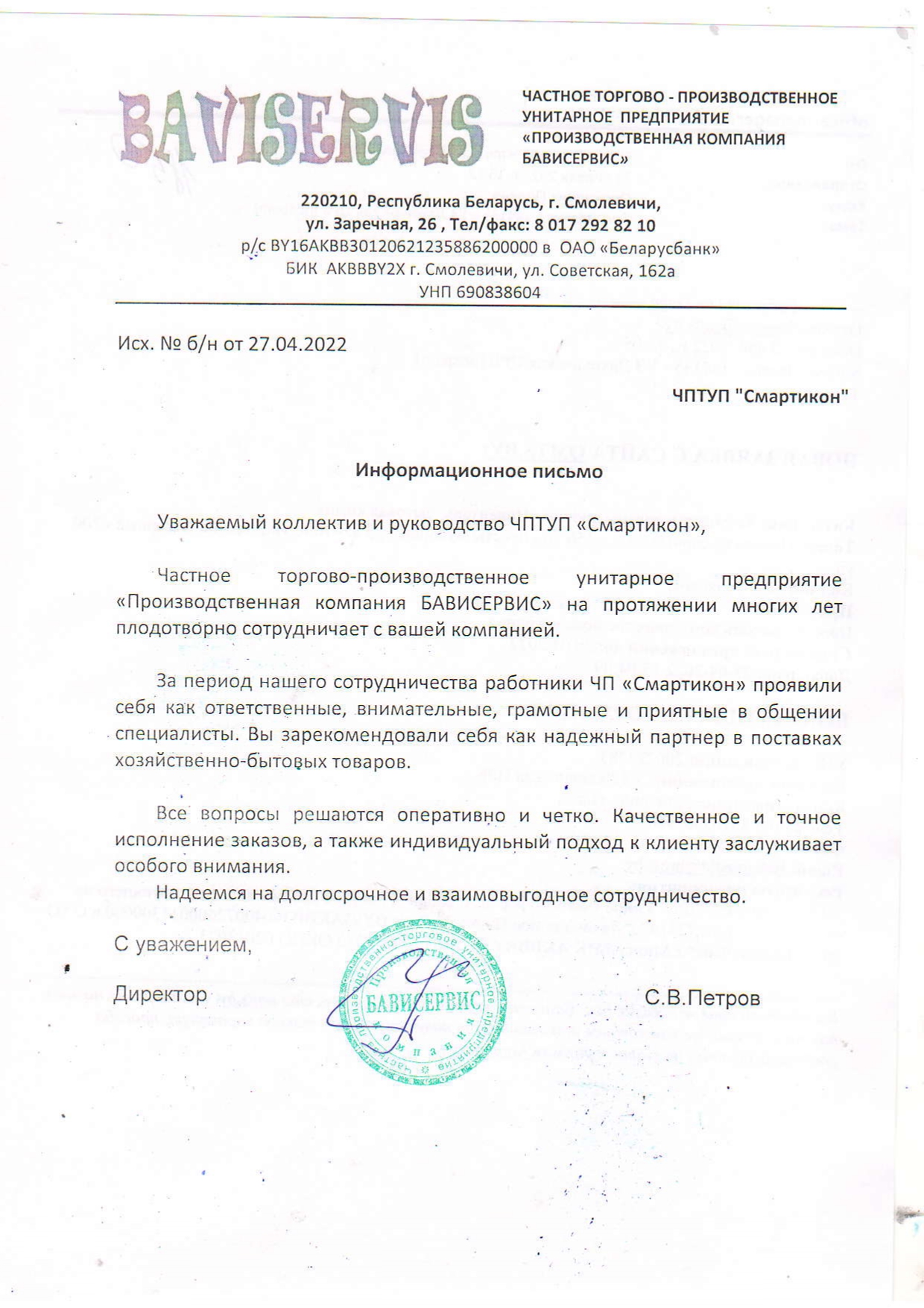 Спасибо компании Смартикон за широкий ассортимент товаров хозяйственного назначения по приятным ценам и удобный сервис при заказе и доставке данных товаров. С каждым днем вы становитесь лучше и ближе к клиенту. Спасибо, что вы есть!
