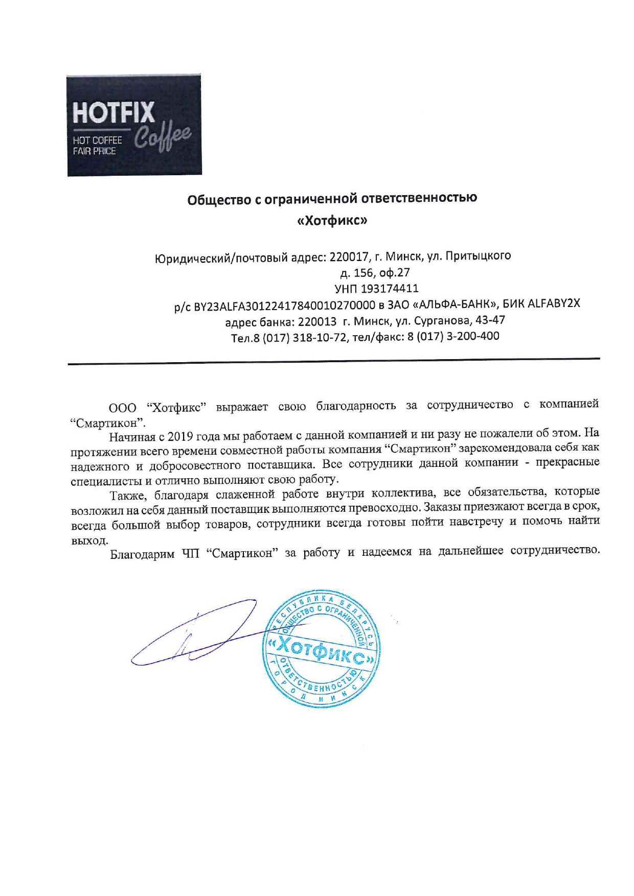 Спасибо, что выбрали компанию СМАРТИКОН для покупок! Мы очень ценим ваше внимание. Было бы просто превосходно, если бы вы поделились своим опытом о работе с нами. Другие люди чувствуют себя намного более комфортно, видя отличные рекомендации от реальных пользователей. Это даёт им уверенность, что они получат необходимую поддержку, если с нашими услугами возникнут проблемы.